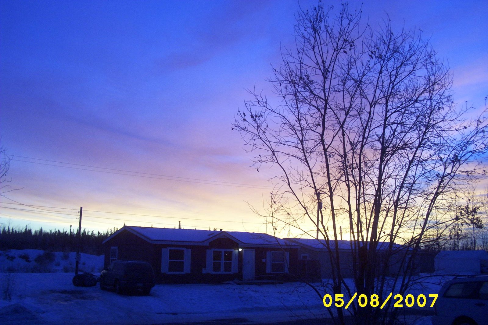 So this was taken from the front door this morning at about 8:20. Just for posterity sake, that is: 8:20 am, Nov. 9th, 2007, North Pole, Alaska. *grin* That's looking over the top of B&W's house. DD looked out the window and she said "Mom, wow, come look at this." This was taken a couple of minutes after that, as I had to find the darned camera first. *grin*